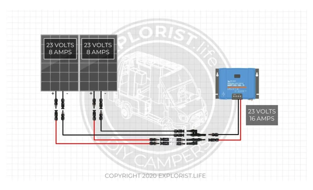 Eelnevas peatükis jäi aga mainimata üks oluline asi. Kahe paneeli eelis ühe ees tuleb esile ainult siis kui ühendame nad omavahel jadasse. Alternatiivne variant on nad panna paraleeli, räägime nüüd ühe ja teise meetodi eelistest. Kõikide ühenduste puhul on oluline, et kasutataks sama tüüpi paneele. Erinevate paneelide kombineerimine viib suure tõenäosusega olukorrani, kus ei saada päikesepaneelidest maksimumi kätte. Tihtipeale on aga tulenevalt ruumi puudusest vaja kasutada erinevate mõõtmetega päikesepaneele ning sellises olukorras on soovituslik kasutada mitut erinevat kontrollerit (järgmises peatükis kontrolleritest veidi põhjalikumalt).
