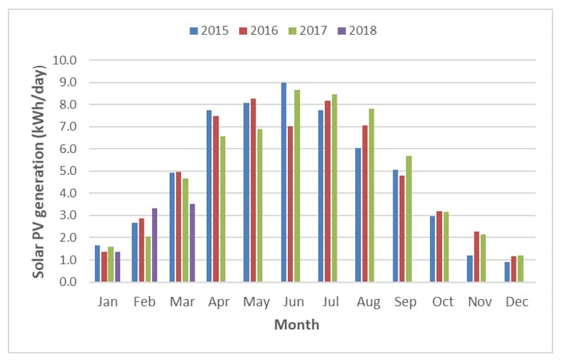 Päikesepaneeli tootlikus kuude lõikes (maja näitel)