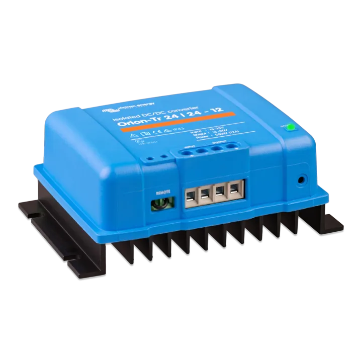 Orion-Tr DC-DC konverter on professionaalne ja töökindel seade alalispinge muundamiseks ühelt pingetasemelt teisele või stabiilse alalispinge tagamiseks sõidukites, paatides ja autonoomsetes energiasüsteemides. Seade tagab stabiilse väljundpinge ka muutuva sisendpinge korral(nt akupinge kõikumised), kaitstes tundlikke seadmeid üle- ja alapingest ning tagades usaldusväärse toite muutuvates töötingimustes. Orion-Tr konverterid on lühisekindlad, termokaitsega ning sobivad pidevaks tööks ka nõudlikes tingimustes. Seadmeid on saadaval 12/24/48V süsteemidele ning suurema võimsuse saavutamiseks võib mitu konverterit ühendada paralleelselt.