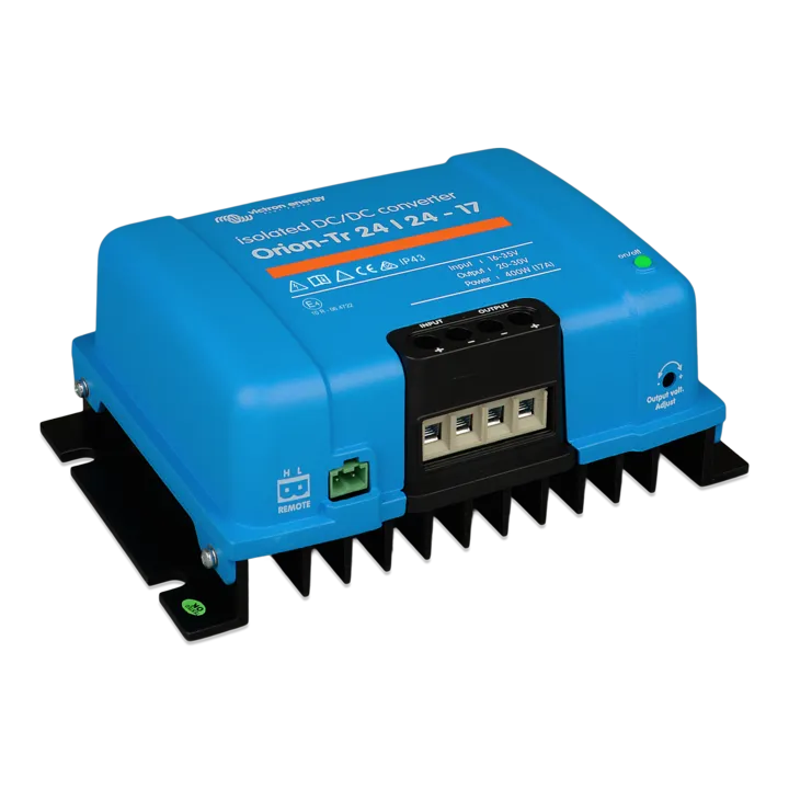 Orion-Tr DC-DC konverter on professionaalne ja töökindel seade alalispinge muundamiseks ühelt pingetasemelt teisele või stabiilse alalispinge tagamiseks sõidukites, paatides ja autonoomsetes energiasüsteemides. Seade tagab stabiilse väljundpinge ka muutuva sisendpinge korral(nt akupinge kõikumised), kaitstes tundlikke seadmeid üle- ja alapingest ning tagades usaldusväärse toite muutuvates töötingimustes. Orion-Tr konverterid on lühisekindlad, termokaitsega ning sobivad pidevaks tööks ka nõudlikes tingimustes. Seadmeid on saadaval 12/24/48V süsteemidele ning suurema võimsuse saavutamiseks võib mitu konverterit ühendada paralleelselt.