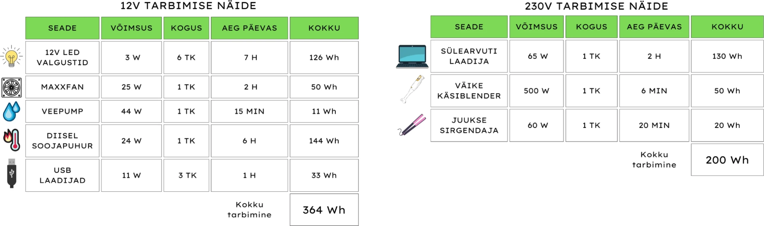 Kokku 564 Wh päevast tarbimist(külmik peaks olema gaasi pealt)