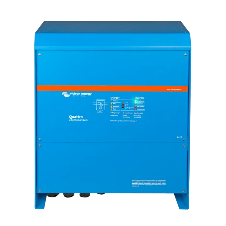 Victron Quattro on kombineeritud puhta siinuse inverter ja laadija ühes elegantses pakendis. Selle paljude funktsioonide hulka kuulub tõeline siinuslaine muundur, adaptiivne laadimine, hübriidtehnoloogia PowerAssist ja mitmed süsteemiintegratsiooni funktsioonid.